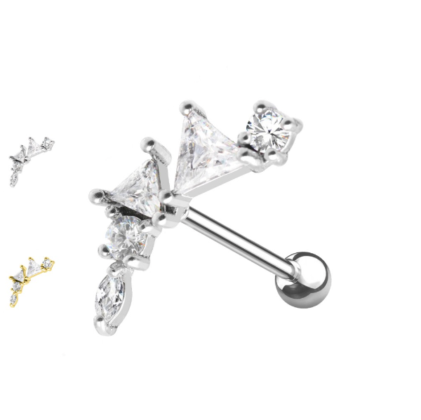 Piercing in acciaio chirurgico color oro e color argento con brillanti di varie forme geometriche
