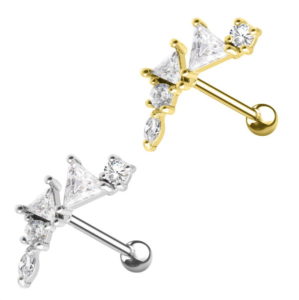 Piercing color oro color argento con brillanti di varie forme geometriche